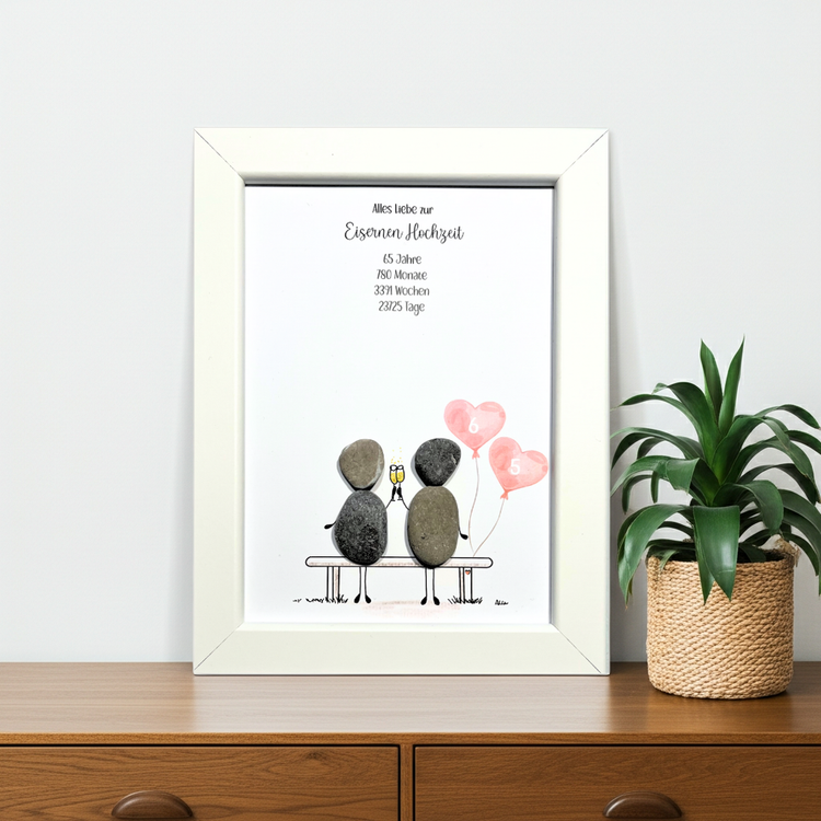 Handgefertigte Steinbilder und Karten zur Eisernen Hochzeit. Individuell gestaltbar für das besondere Jubiläum.