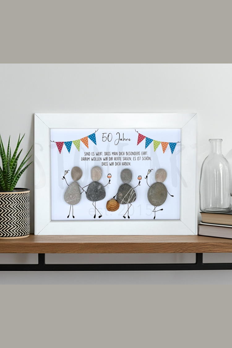 Feiere besondere Momente mit einem einzigartigen, handgefertigten Steinbild. Jedes Kunstwerk wird aus echten Naturkieseln und Treibholz liebevoll gestaltet – ein persönliches Geschenk, das Erinnerungen schafft. Ob für Familie, Freunde oder Kollegen, unsere Unikate machen jeden Geburtstag unvergesslich. Nachhaltig, handgemacht in Deutschland und voller Herz – so wird jedes Geschenk zu etwas ganz Besonderem.
