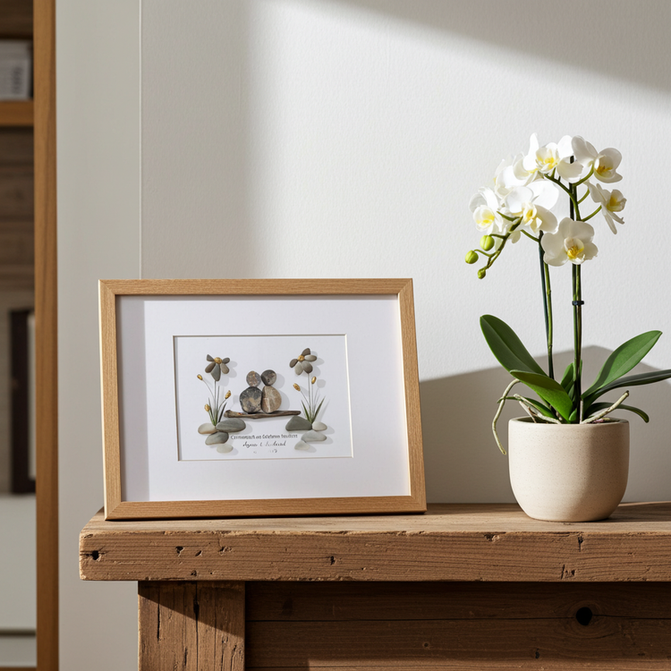 Geschenk zur Goldenen Hochzeit – Personalisiertes Steinbild aus Naturmaterialien