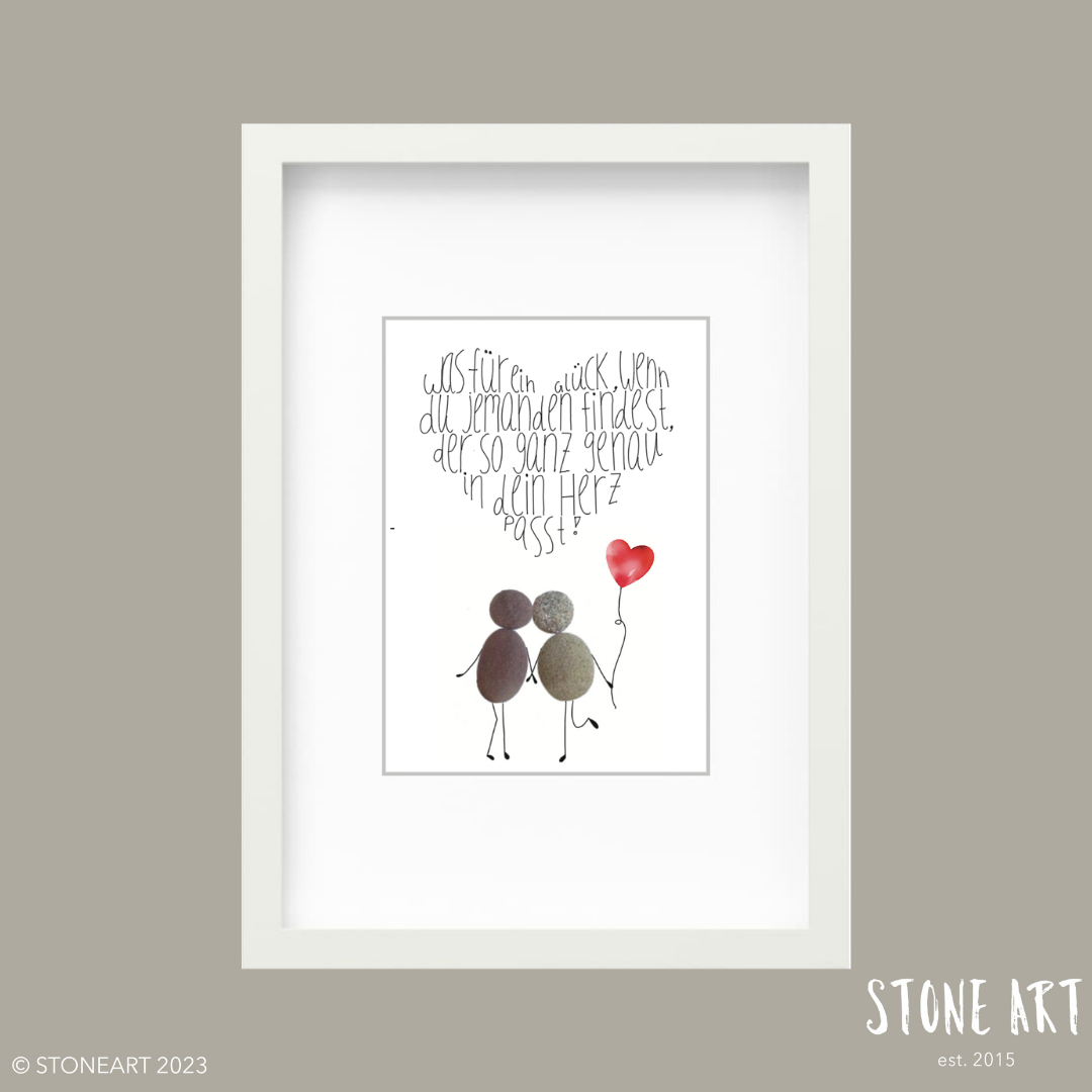 Dieses handgemachte Steinbild mit dem Spruch „Was für ein Glück, wenn du jemand findest, der so ganz genau in dein Herz passt“ fängt genau das ein, was Liebe und Freundschaft ausmacht – gemeinsame Erlebnisse, unvergessliche Momente und echte Verbundenheit.