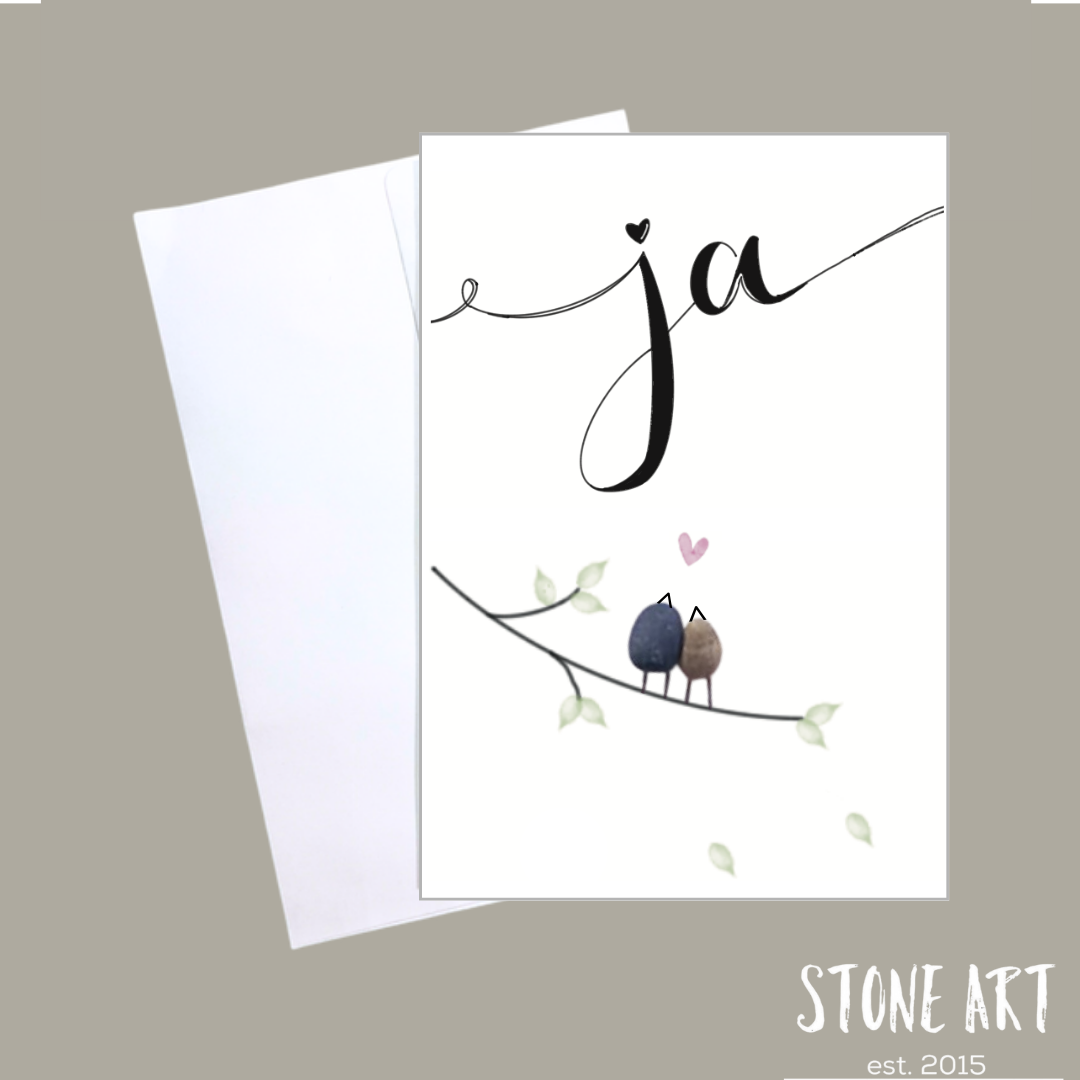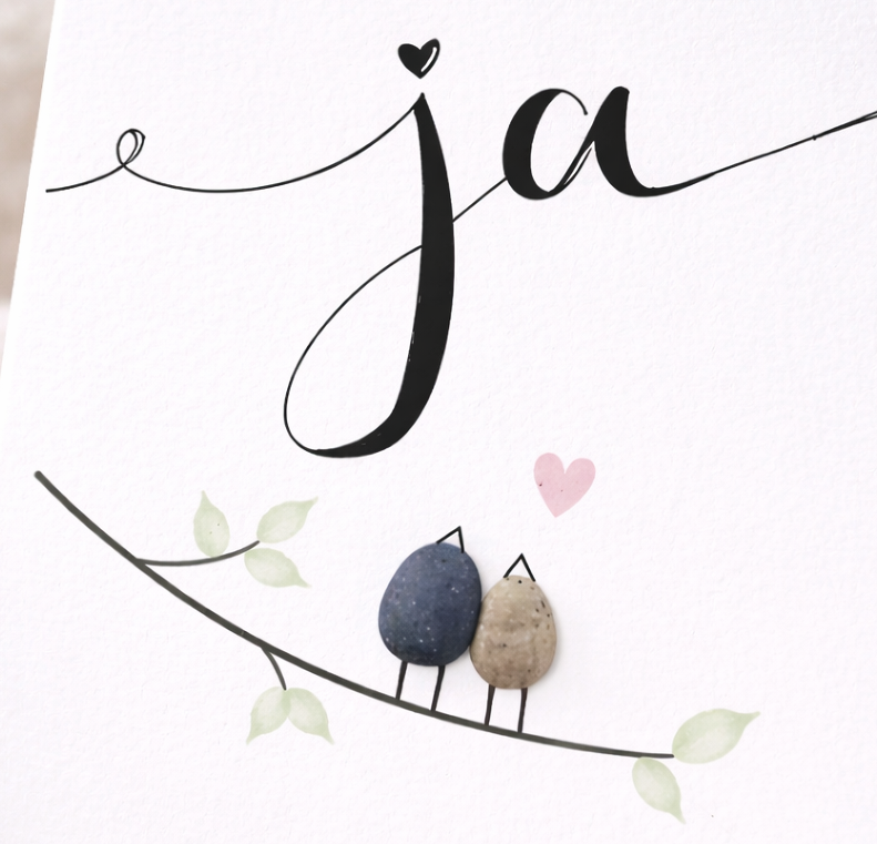 Die Karte „Ja – Vogel auf Ast“ ist eine besondere Hochzeitskarte, die den Moment des Ja-Wortes auf eine ruhige, symbolische Weise einfängt. Der Vogel auf dem Ast steht für Vertrauen, Zusammenhalt und den gemeinsamen Weg – genau das, was eine Ehe, eine Verlobung oder ein Hochzeitstag bedeutet.