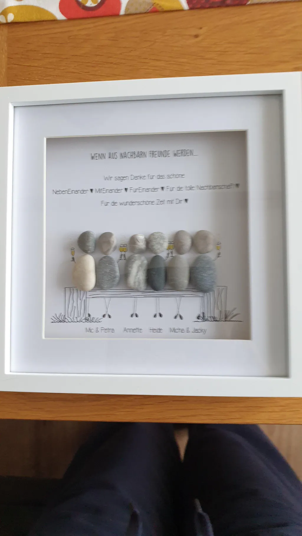 Manchmal findet man die besten Freunde direkt nebenan. Dieses handgemachte Steinbild ist das perfekte Geschenk für Nachbarn, die zu echten Freunden geworden sind – zum Einzug, Auszug oder einfach um Danke zu sagen.