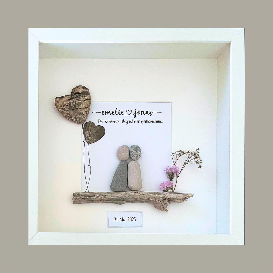 Steinbild „Der schönste Weg ist der gemeinsame“ mit Namen – Hochzeit