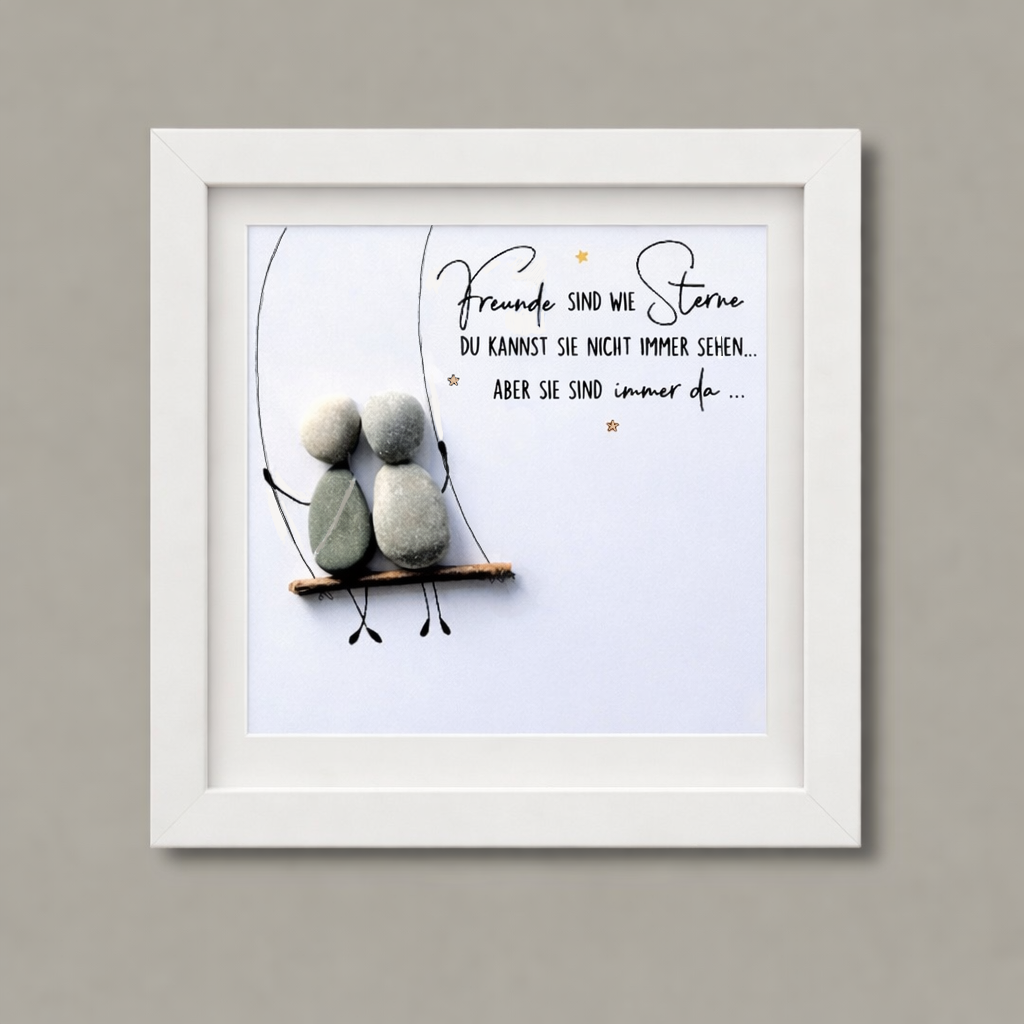 Steinbild „Freunde sind wie Sterne“ – Schaukel-Motiv – Freundschaftsgeschenk