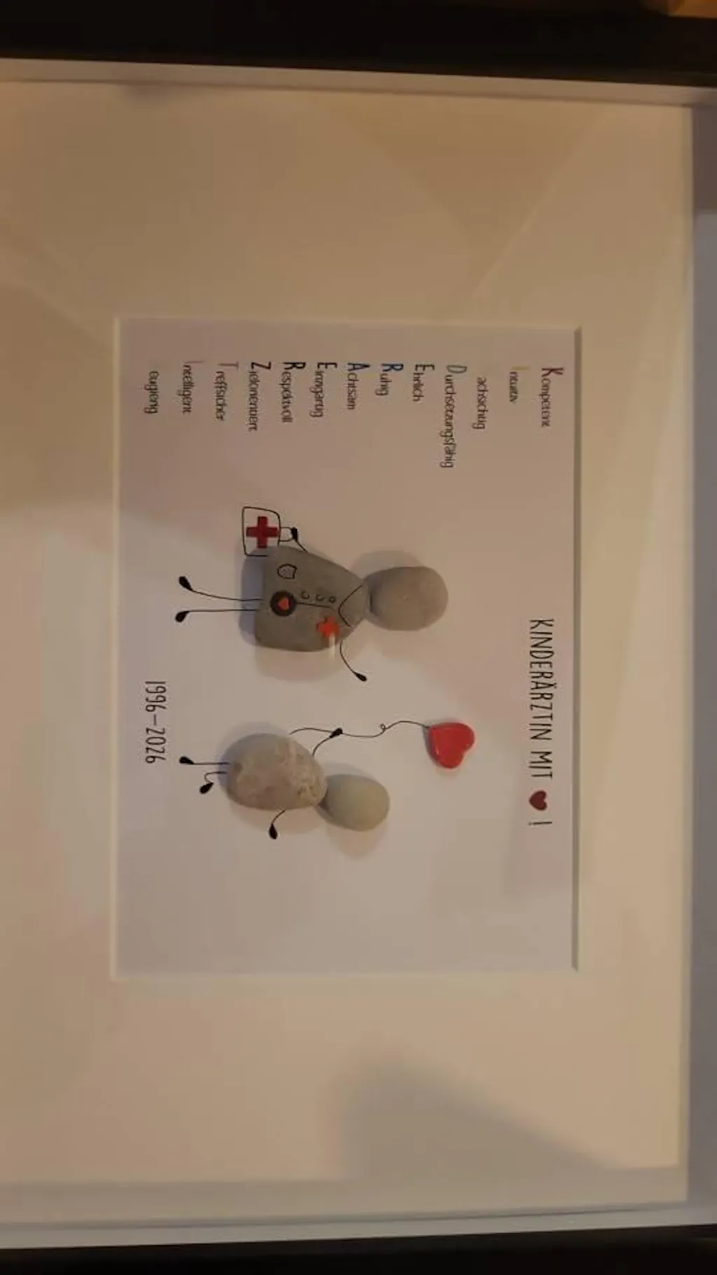 • Steinbild Kinderarzt mit Herz – handgemacht aus echten Kieselsteinen