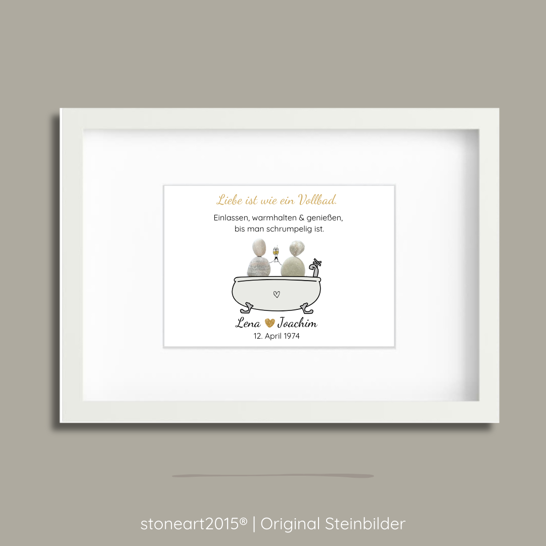 Passend zu deinem Steinbild kannst du eine handgemachte Glückwunschkarte zur Goldenen Hochzeit dazukaufen. Die Karte ist perfekt abgestimmt und macht dein Geschenk zu einem stilvollen Set, das sofort verschenkt werden kann – ideal für Freunde, Familie oder das eigene Jubiläum.