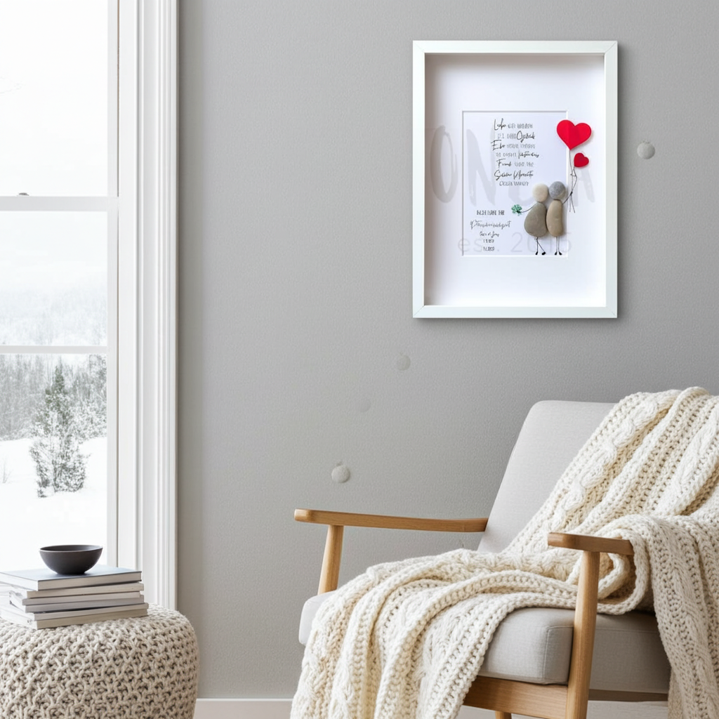Dieses handgefertigte Steinbild kombiniert Natursteine und zarte Elemente zu einem einzigartigen Kunstwerk. Perfekt als Dekoration oder als erinnerungswürdiges Geschenk zur Petersilienhochzeit.